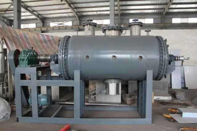 耙式真空干燥機采用大面積夾層加熱方式,傳熱面大,熱效率高。機器設(shè)置攪拌,從而可順利進(jìn)行漿狀、膏狀、糊狀物料干燥,使物料在筒內(nèi)形成連續(xù)循環(huán)狀態(tài),進(jìn)一步提高了物料受熱的均勻度。